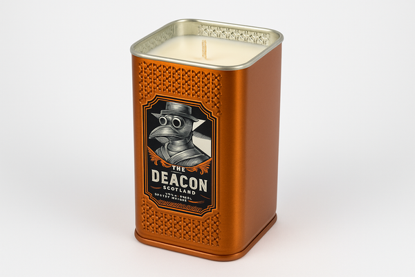 Maritime Whiskey Fragrance - Inspired by The Deacon's distinctive character, this candle captures the essence of coastal Scottish whiskey with rich notes of honey sweetness, warm vanilla, and subtle maritime salt air. The complex aroma unfolds with hints of oak barrel aging, gentle peat smoke, and the fresh breeze of Scottish highlands meeting the sea.